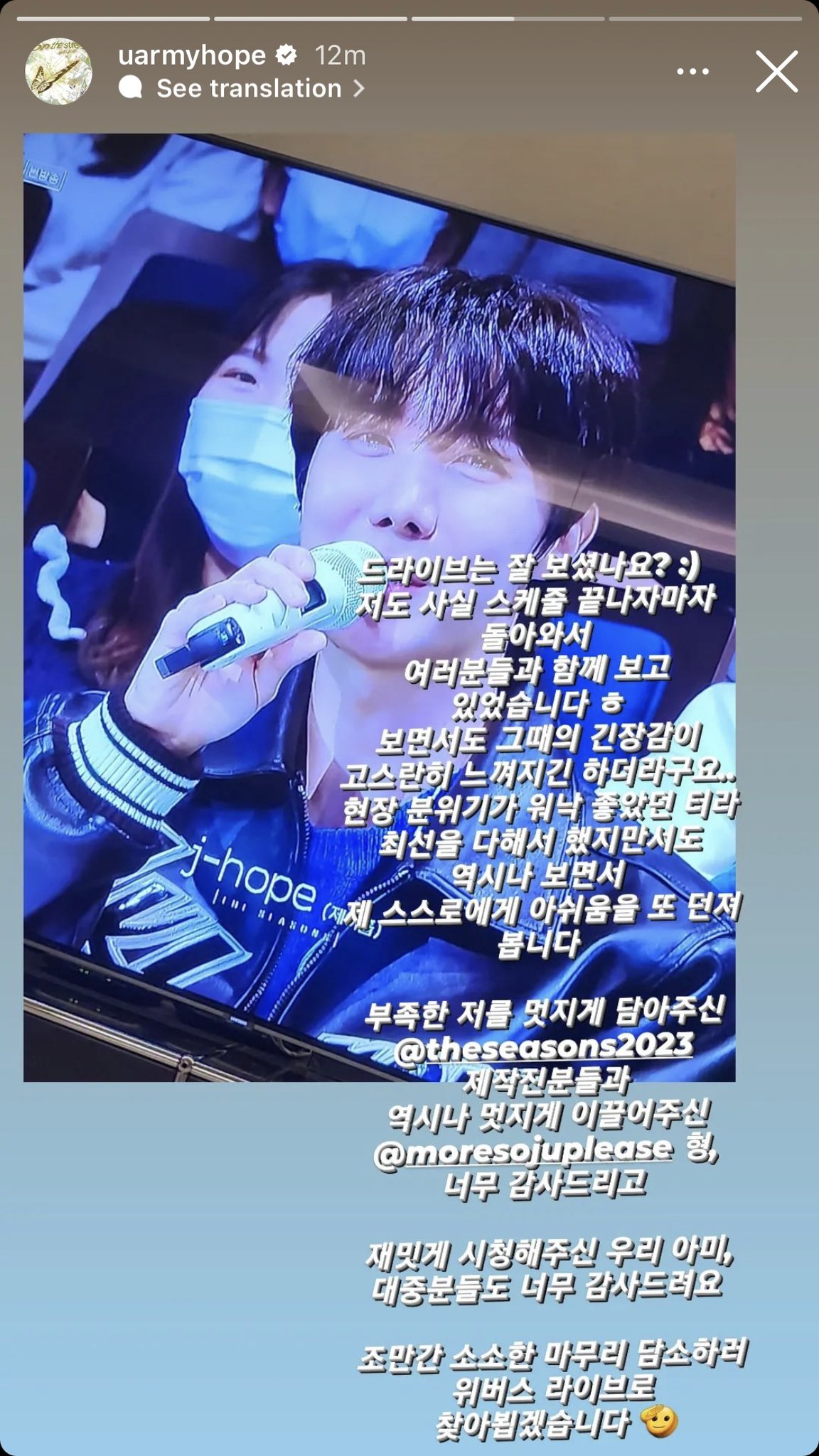 I will see you soon on Weverse Live to have a small chat."