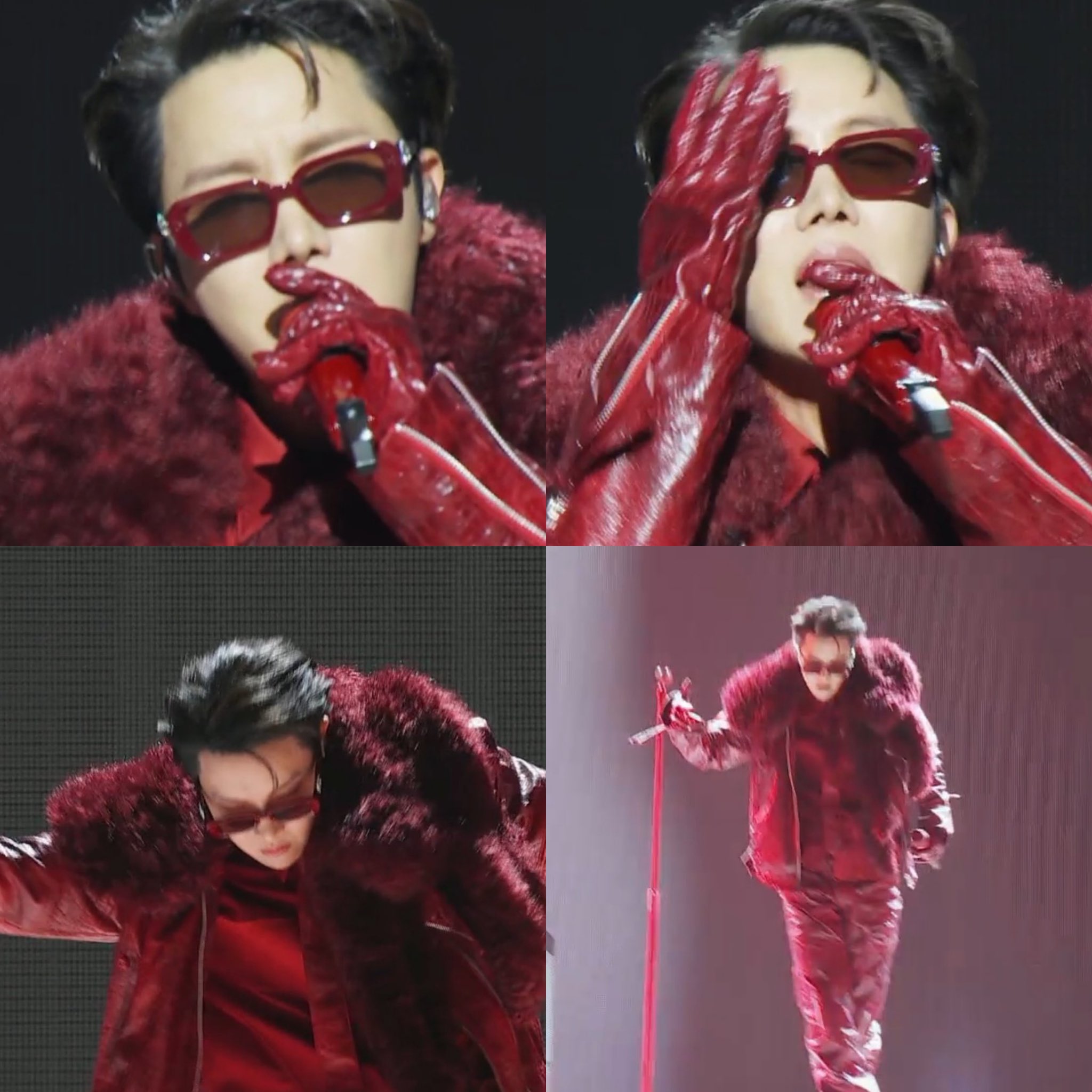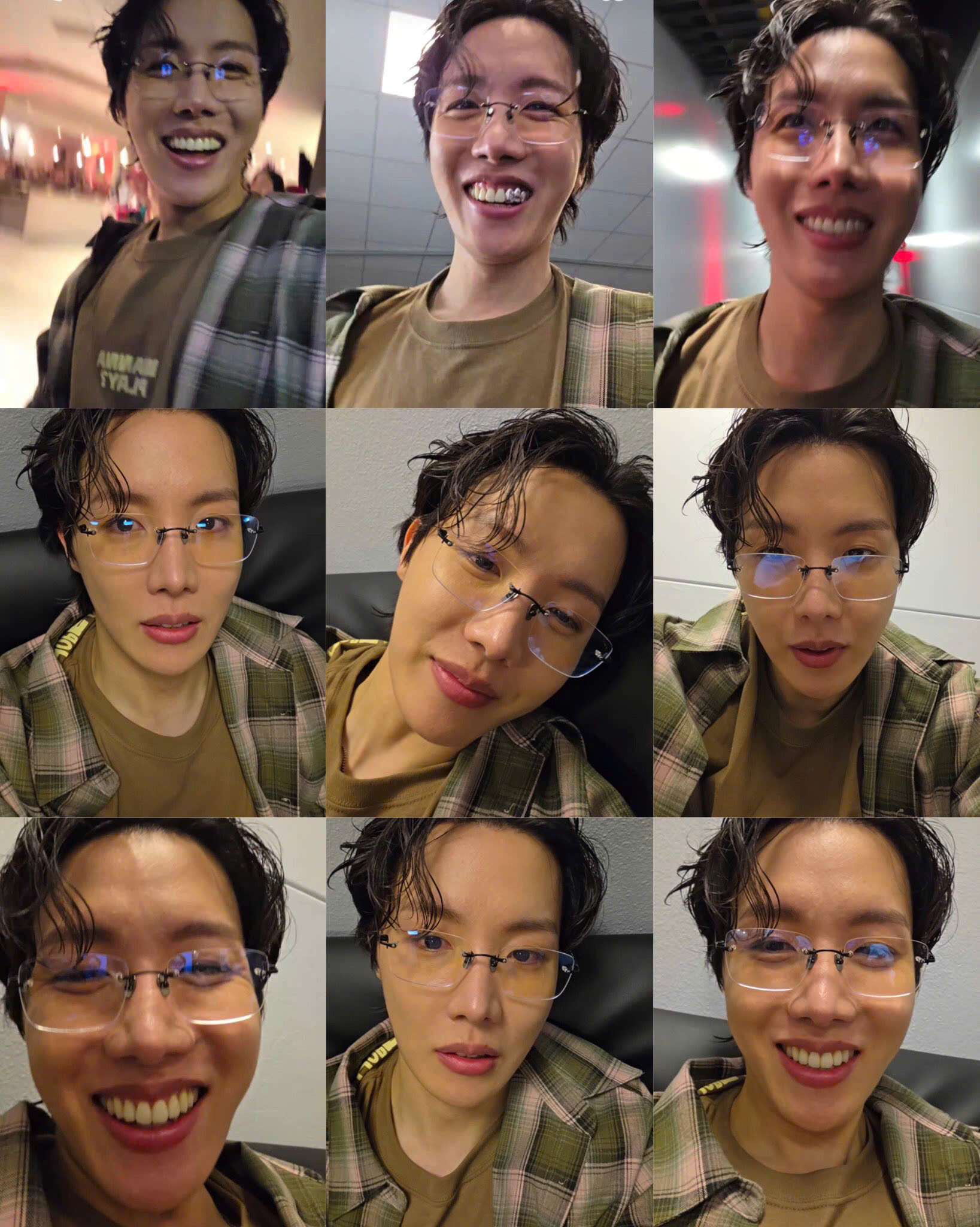 On this day, sweat soaked his hair and shirt, but his face was gorgeous and full of joy. j-hope expressed: "There really is a charm to tours. If my constitution would allow it, I would go everywhere."