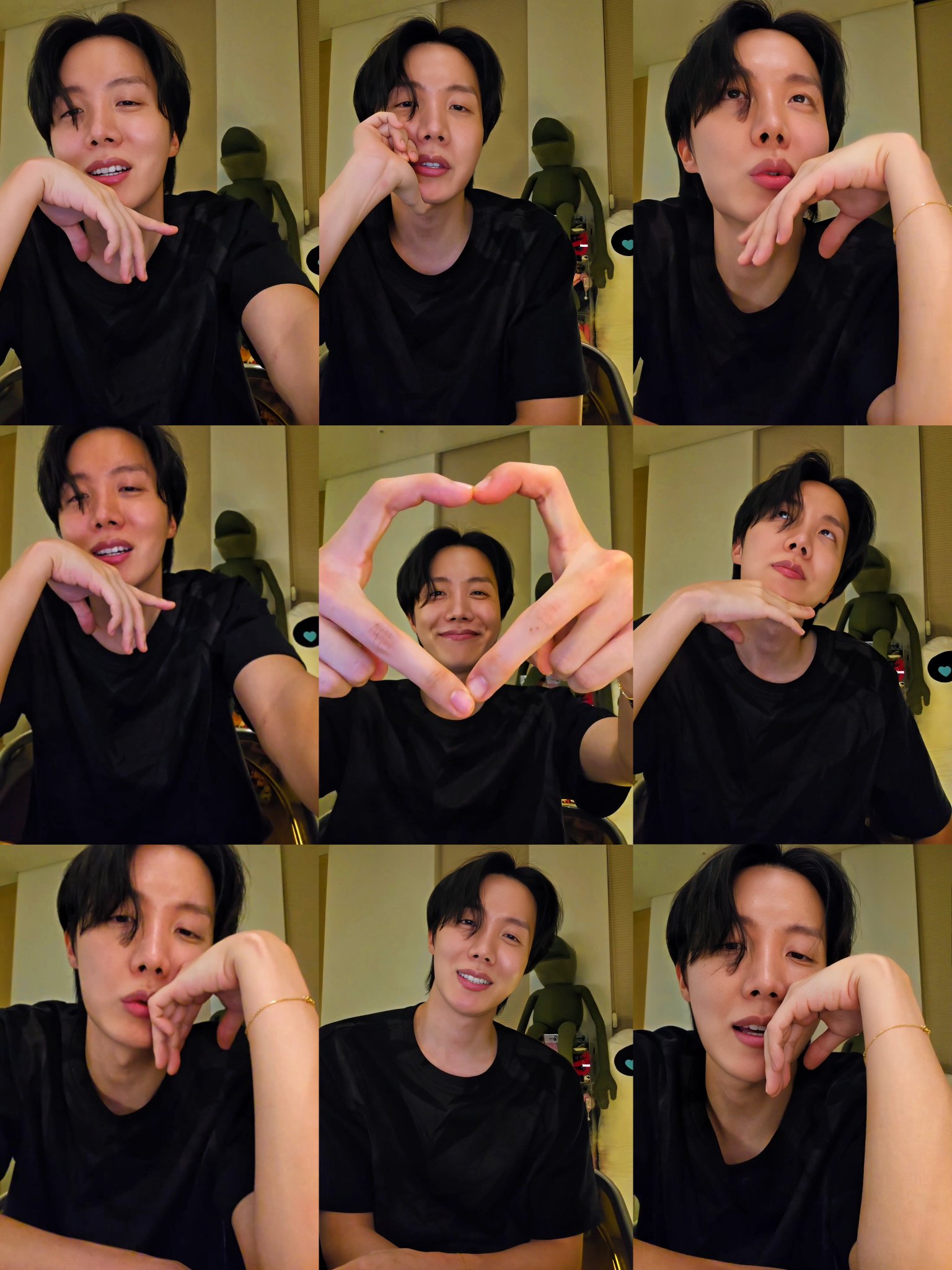 j-hope was seen looking like he was at his apartment, wearing casual clothes and of course bringing happy energy to ARMYs through the screen. He even joined in on the fans' jokes and chatted back and forth with Jin and Jimin - 2 members who participated in the live broadcast in the comments section.