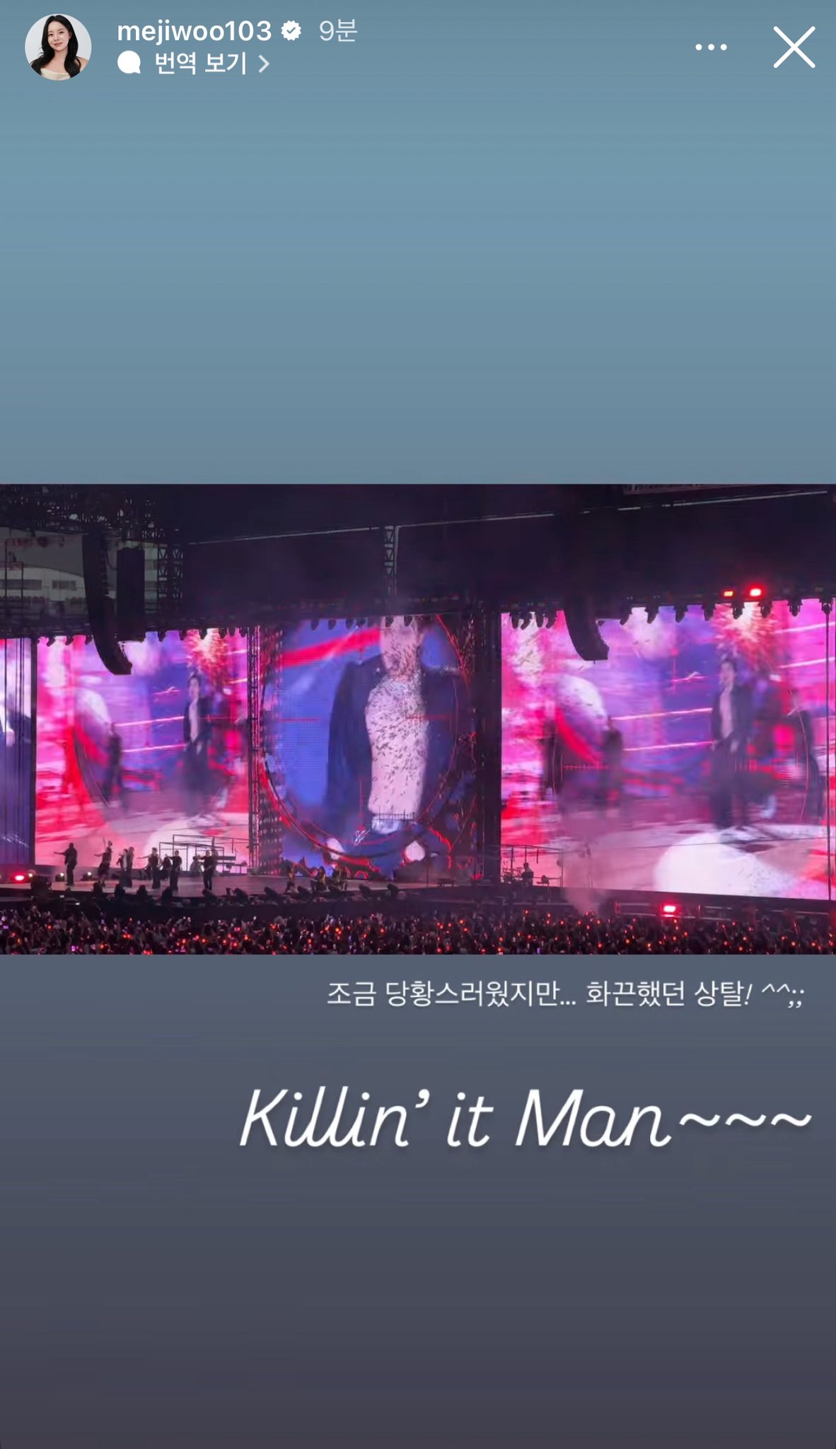 j-hope's sister Jiwoo exclaimed "I was a little taken aback but... a fiery shirtless moment! ^^ Killin' it Man~~" when capturing his stage moment.