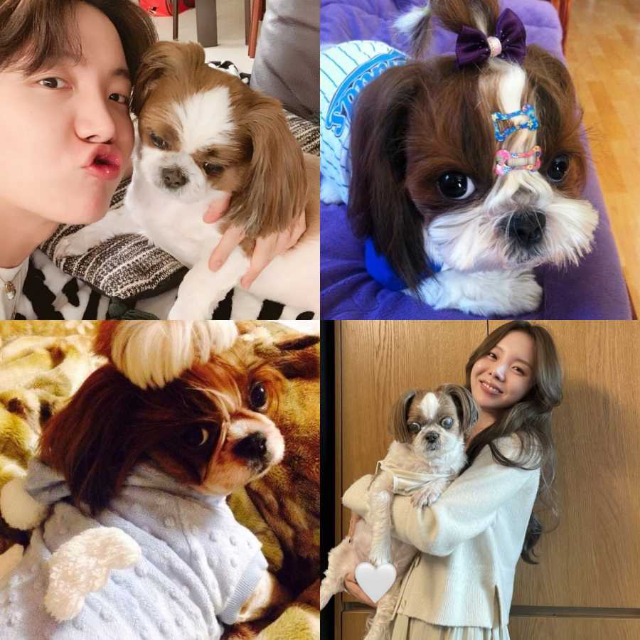 The name of this dog means "lion" but Shih Tzu are actually very lovable dogs. In the photos shared by j-hope, the dog is often seen wearing cute bows, pins and colorful outfits.