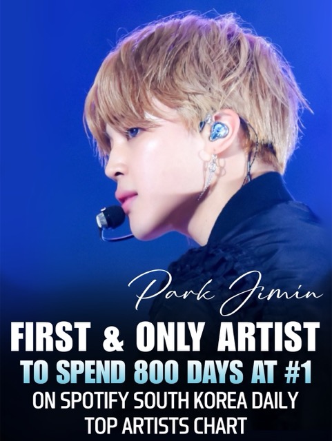 - 800 consecutive days at #1 on Spotify South кσяєα’s Top Artists chart...a milestone no one has ever approached
