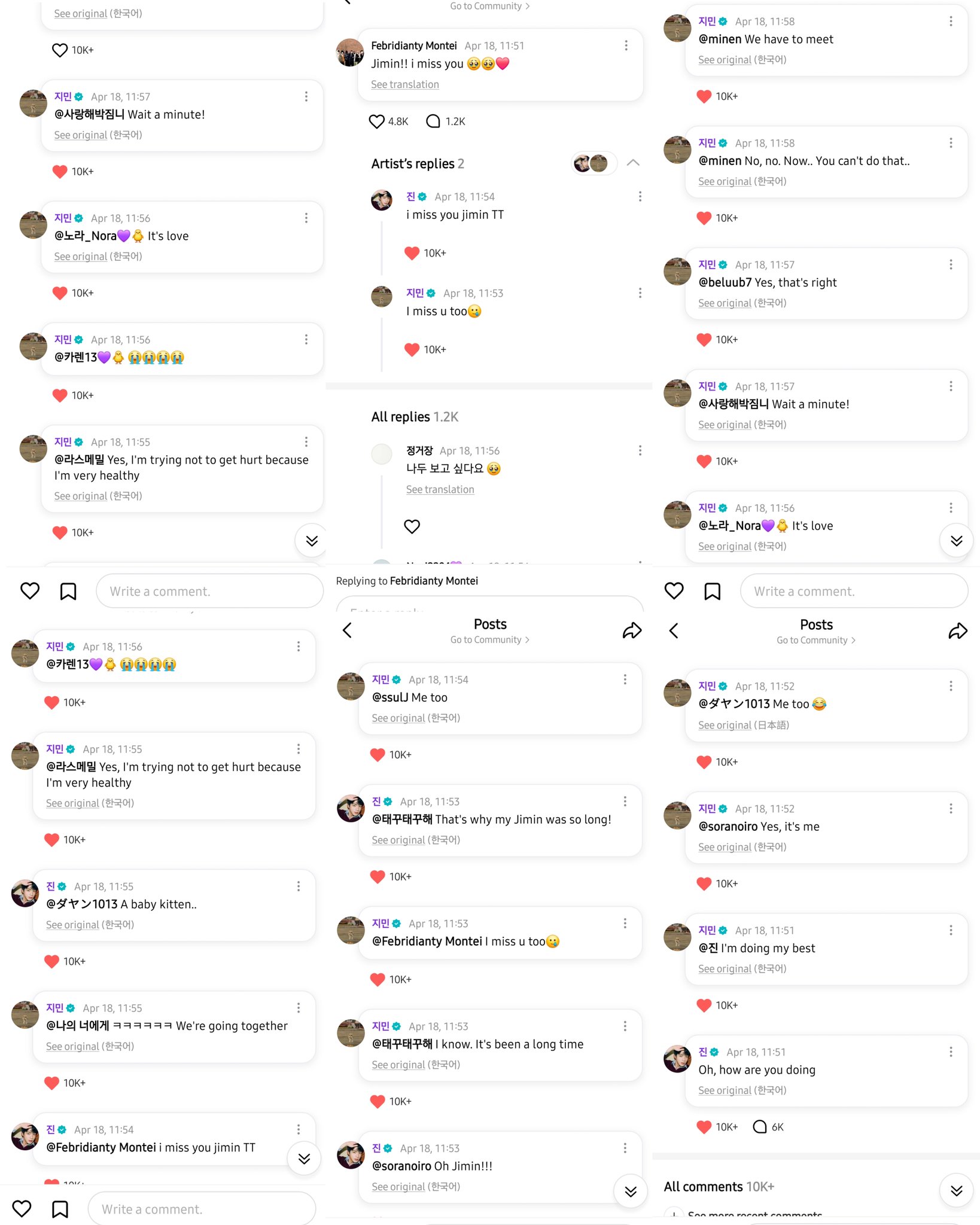 "I miss you Jimin TT", Jin wrote under Jimin's comment to fan. And then, a lot of warm interactions between the two brought fans to tears!