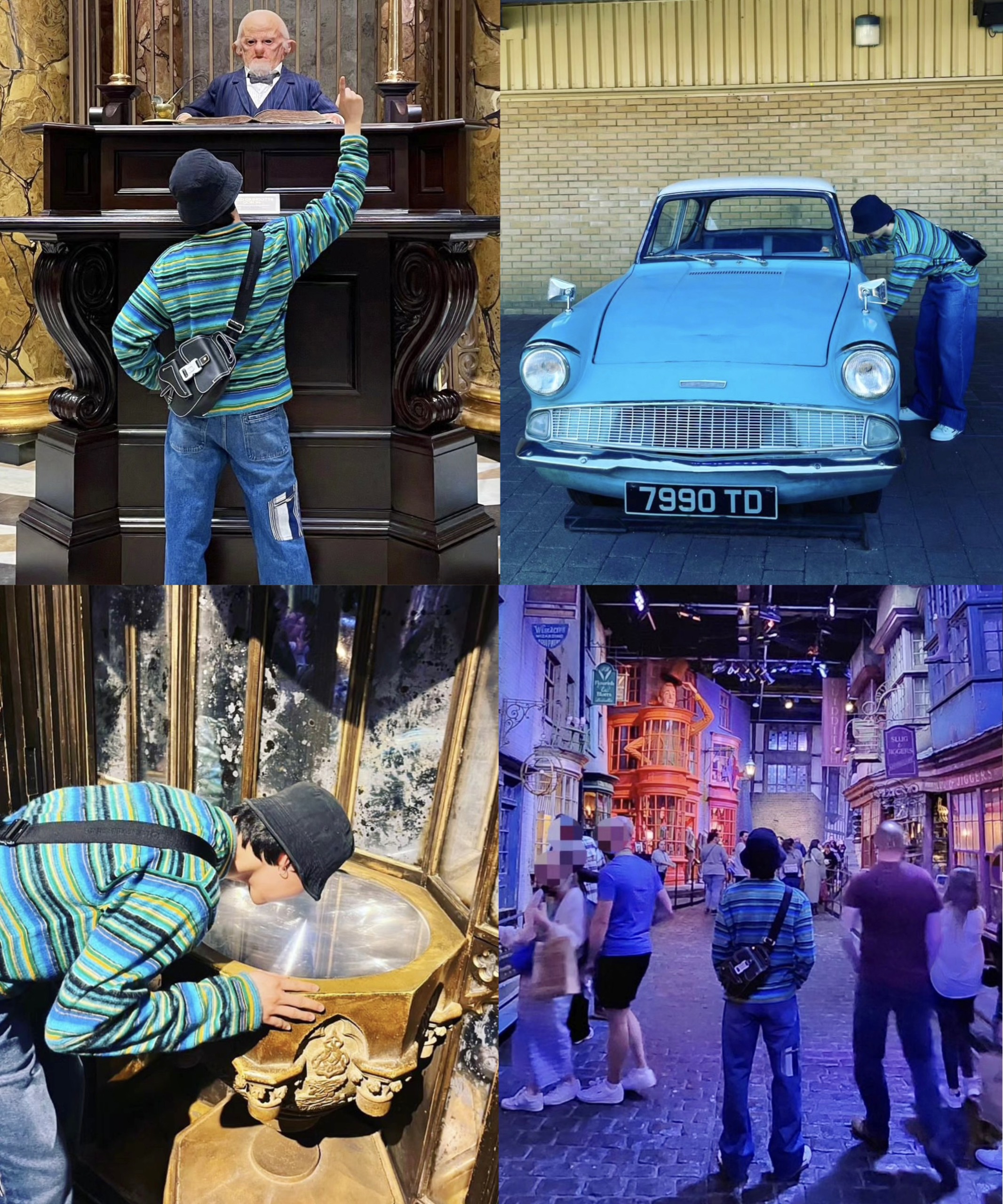 Jimin shared photos and footage of his activities during the walking tour of The Making Of Harry Potter. Based on his outfit, it looks like he was on a flight home right after a tour at Warner Bros. Studio. An ARMY claiming to be the one who worked as a tour guide for Jimin on this trip also confirmed it.