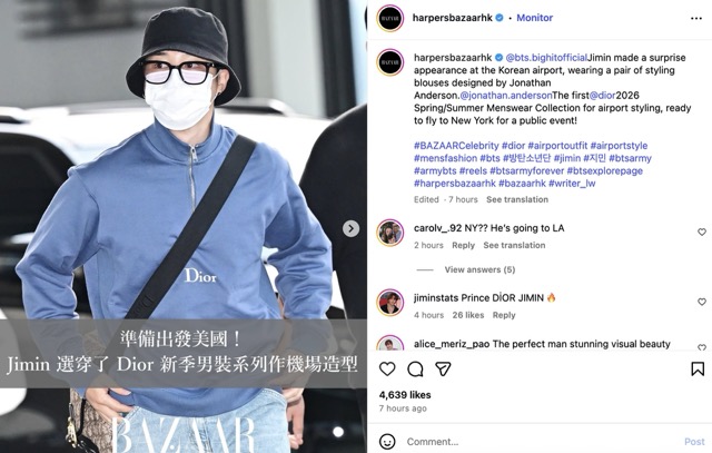 Notably, Jimin’s return to public life after completing his military service has renewed public interest in his partnership with Dior. A recent update from Harper’s Bazaar thrilled fans with the news: Jimin is “ready to fly to New York for a public event.”