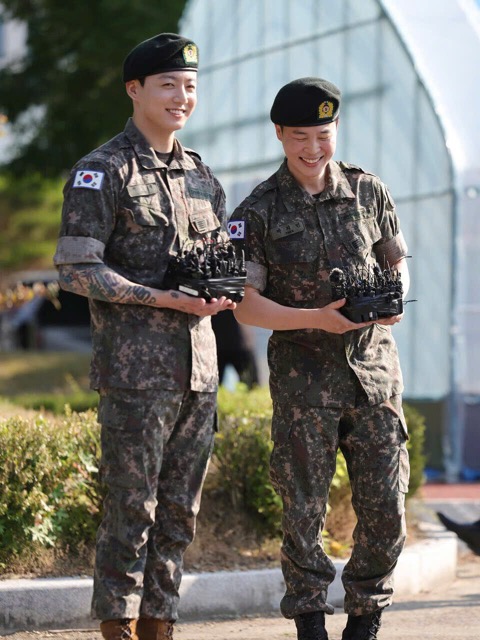 The moment they met the press and fans after 18 months made both of them awkward and shy. The two top idols even felt worried about their appearance after a long time in the military, not wearing makeup and gaining a little weight.