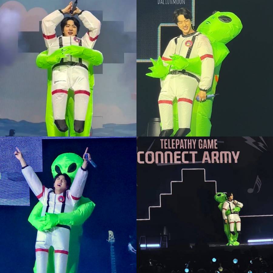 Jin can definitely breathe a sigh of relief when looking at how fans spread highlight videos of him dancing and waving in the alien costume. “Alien Jin” was transformed into fan art, memes, and humorous clips that flooded social media.