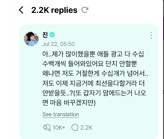 He wrote: “Oh, it's just that I did a lot, but the other members actually get tons of ad offers too, like dozens or hundreds! They just choose not to do them. Even I've turned down more than a dozen myself... I think I'm gonna focus on what I'm doing now and probably won't take on any more...? (Though if soмєтнing I really like pops up, I might totally change my mind, haha!)”