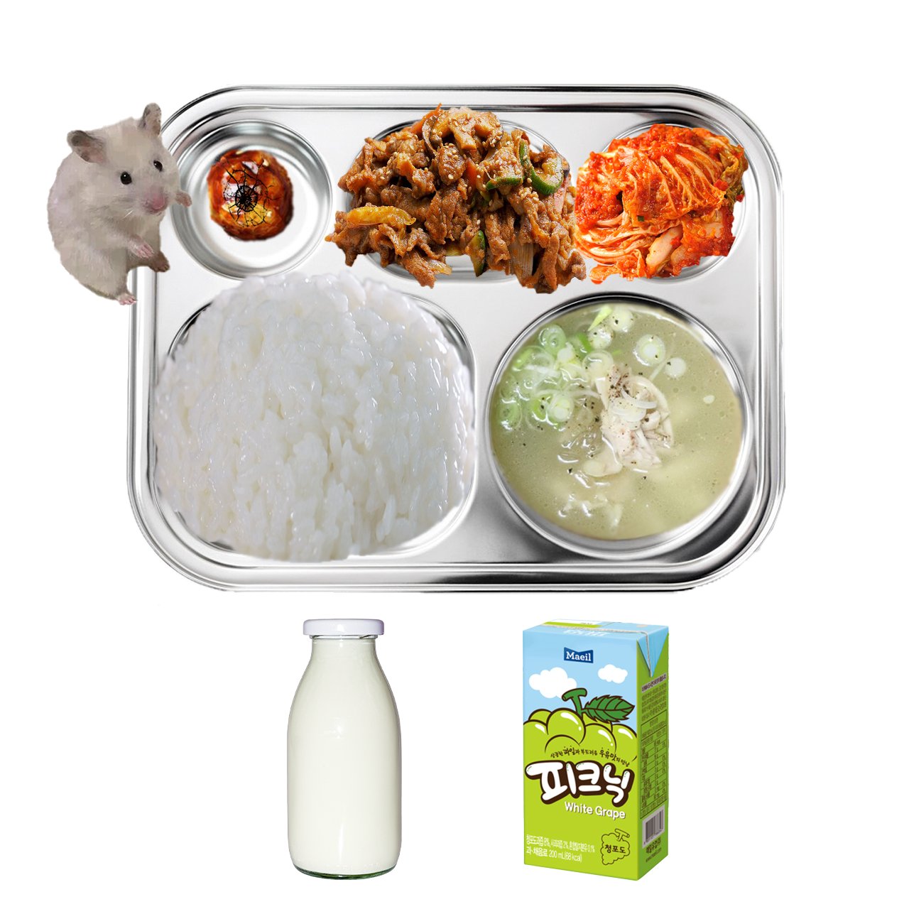 Yesterday his first dinner when he enlisted was shared. The menu includes: Chicken gomtang, stir-fried pork, boiled egg potato taffy, cabbage kimchi. Of course, ARMYs immediately found out that Jin can't eat potatoes.