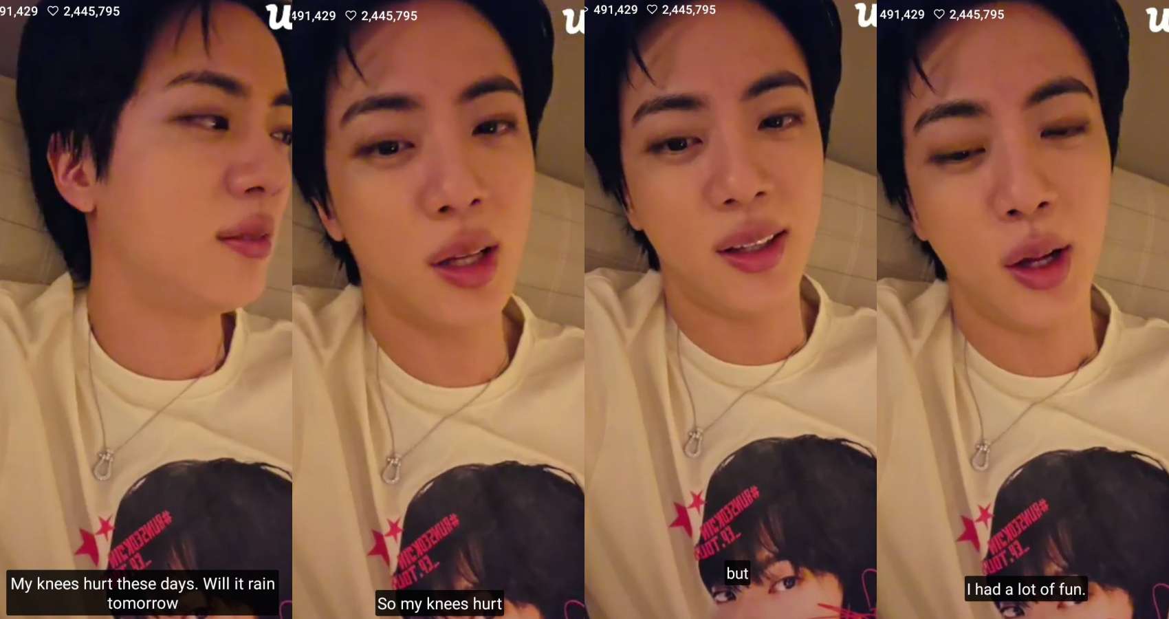 In one particularly candid moment, Jin mentioned that he had started to feel physical signs of declining health. “I didn't used to be like this long ago, but my knees hurt. Maybe it'll rain tomorrow. My knees hurt but I had a great time.” he confessed.