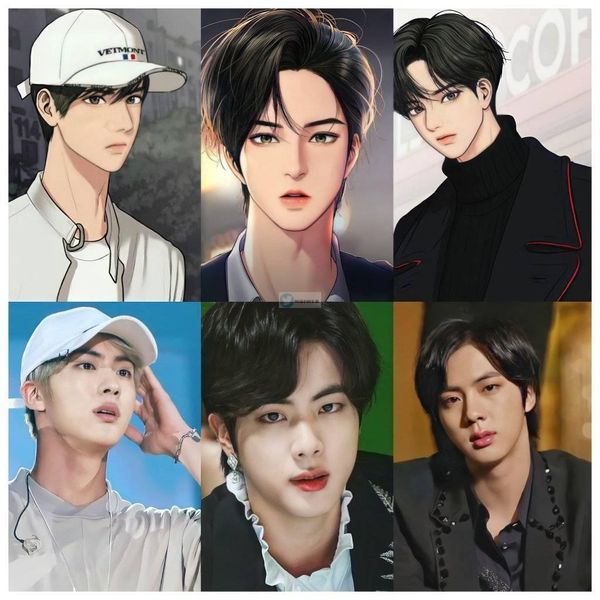 Jin is famous for his golden ratio face and the nickname "Worldwide Handsome" which proves his amazing visuals. Therefore, there are many artists or manga artists who are inspired by their character's image through Jin's image.