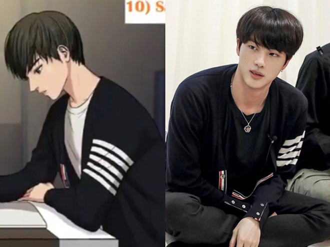 Besides being interested in the content, many people pointed out that Lee Suho looks a lot like Jin from appearance to face and shape. This character has a lot of similarities with Jin such as possessing an ideal height, small face and broad shoulders. Moreover, the costumes worn by Lee Suho in the story are exactly the same as the ones that Jin used to wear in real life. Netizens also quickly put pictures to compare with the character and Jin has absolutely no difference.