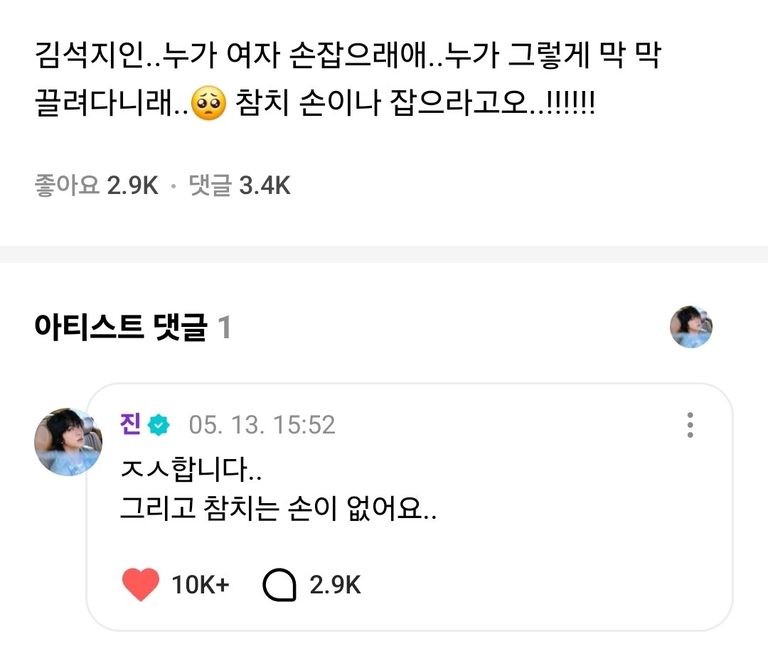 Surprisingly, Jin also saw this comment and he had a quick response right after that, making netizens laugh.