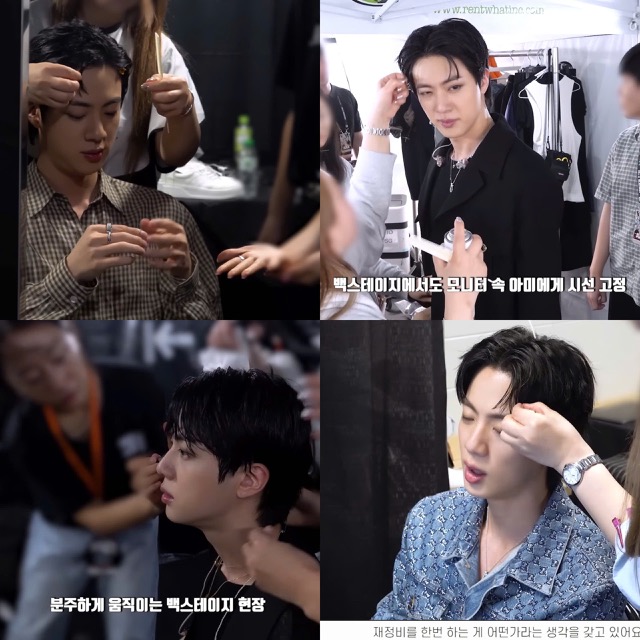Moreover, even when Jin has unique or unconventional ideas for his stage costumes, the stylists and costume staff are often seen diligently working behind the scenes to make them a reality. Even small accessories like bows or headbands are crafted with care, showing their deep dedication to their work.