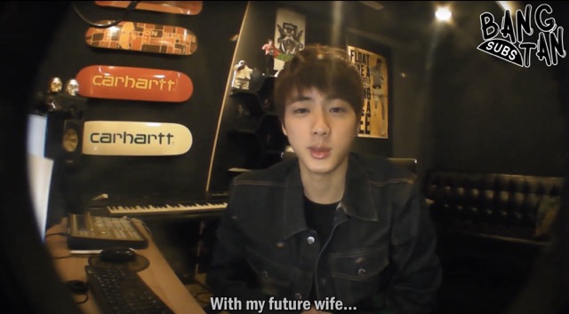 In particular, Jin looks forward to and feels happy when imagining cooking together with his partner: “Sometimes I feel joy when I think about those things,” Jin continued. “Sometimes I get too pleased while thinking those thoughts. And there are times when I burn the food but, even so, I feel happy when imagining things like that. While waiting for a day to come like that someday…”