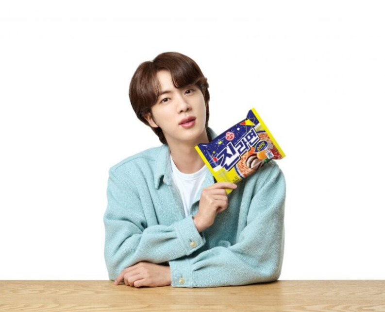 Recently, Jin made the Korean media explode when it was announced to become the official representative of Ottogi's Jin Ramyeon product. Jin also became the first member of BTS to be an advertising model for one of Korea's biggest brands.