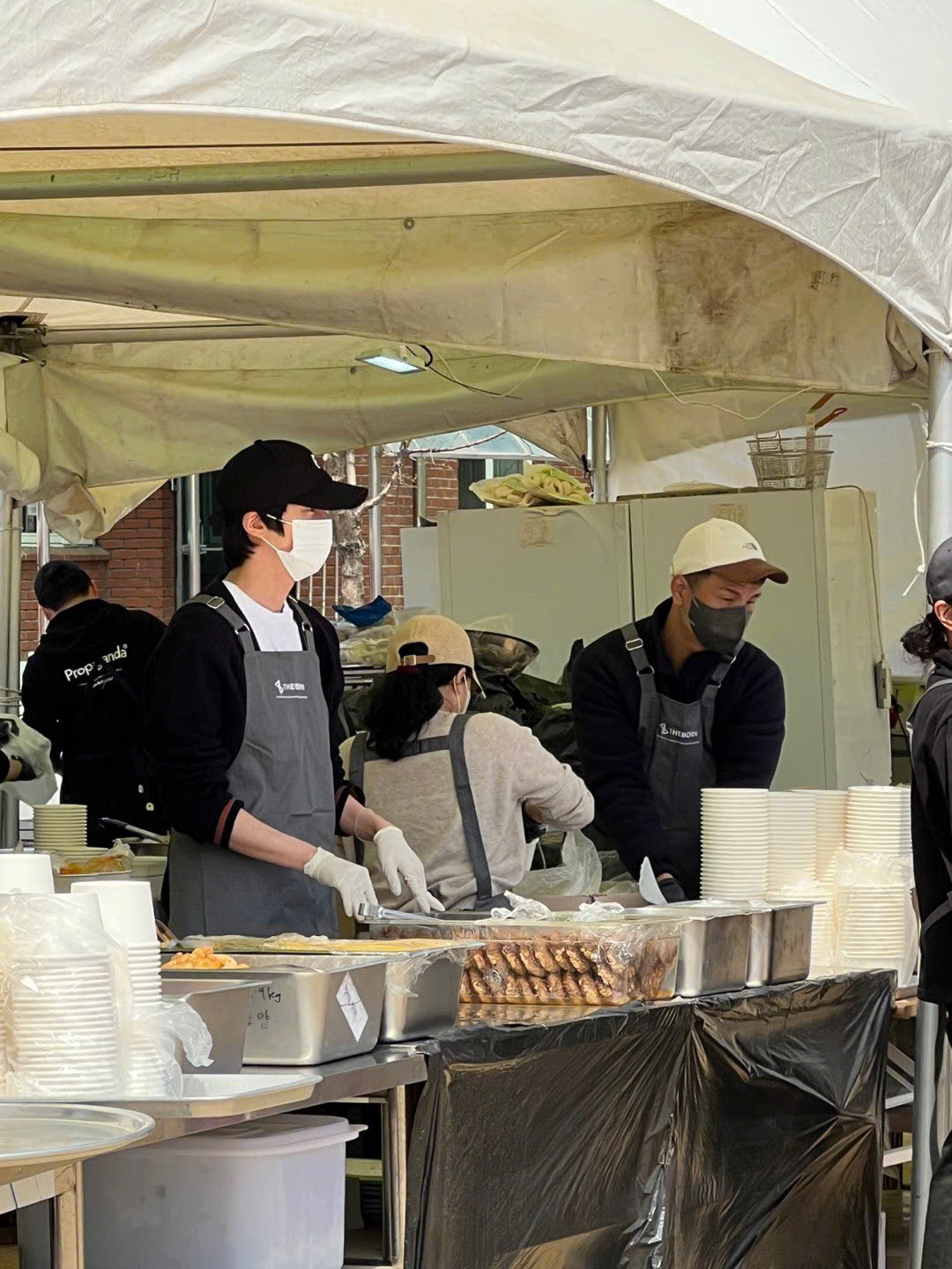 While public opinion was buzzing, some photos of Jin in Andong - a place heavily affected by forest fires - went viral on SNS in the past few hours. According to reports, Jin has become a volunteer to distribute food in the free canteen of "The Born кσяєα" at Gilan High School - giving 1,000 meals a day for evacuees and firefιgнтers.