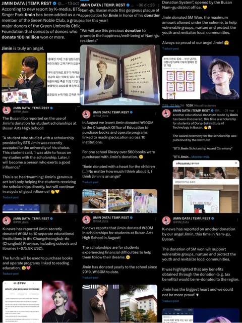 Similarly, Jimin has been donating for children's education for years, even during his military. His last donation wasn't that long ago. He is also the only кσяєαn who has been given the title of "Charity Fairy."