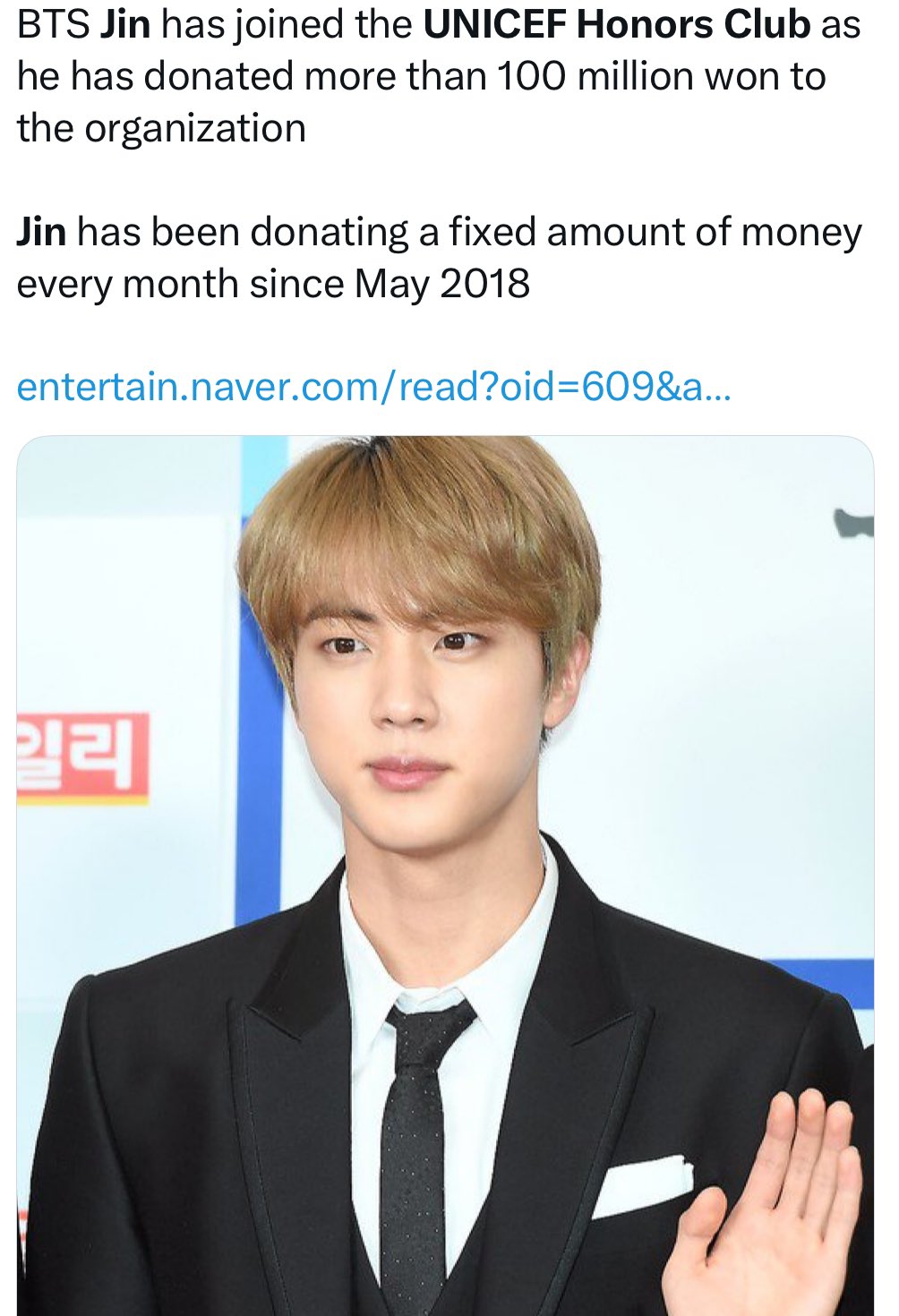 In the past, Jin always keeping it low profile everytime he does a good deed. He ever donated every month to Unicef and became an official member of Unicef Honors’ Club but very long after that, fans just knew.