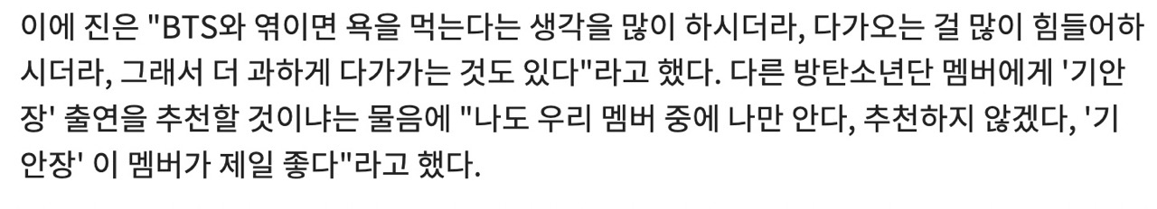 On the other hand, in the first ep, Jin ever mentioned the same as he joined the show. He said: "It might be also be because they feel awkward around me but others people are always polite toward me. But I'd like them to act more friendly with me. So when I stike up a conversaion with someone, I purposely speak in a little more aggressively playful way. That way, we can be more relaxed around each other".