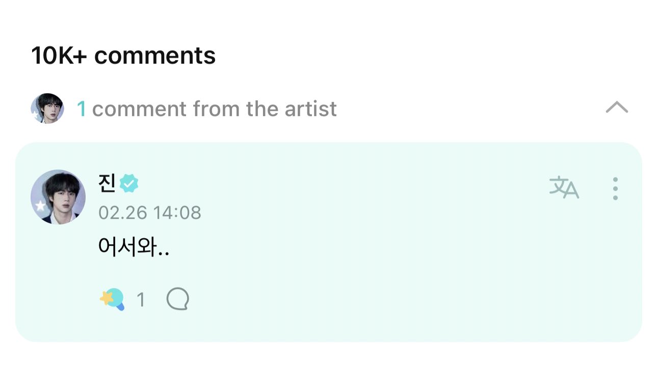 Jin posted a comment under a post by j-hope long ago saying, "Welcome..." as a show of emotional support for his close brother. Jin must have known about j-hope's enlistment plans and as someone who's experienced m̷i̷l̷i̷t̷a̷r̷y̷ life, there's nothing better than encouraging j-hope with a comment like that.