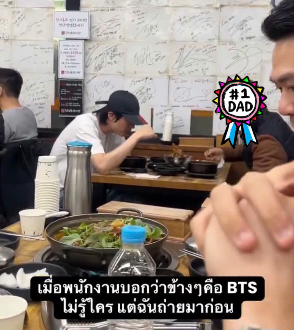 Specifically, the video includes images of Jin and his father enjoying a meal at a кσяєαn restaurant. It was recorded and shared by a non-fan (possibly a foreigner). At first, she sat next to them but didn't know he is a member of BTS until the restaurant owner told her. Notably, Jin's dad's face is also clearly captured in the frame.