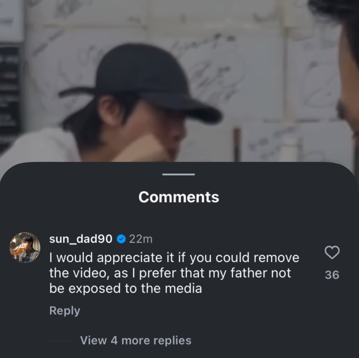 This video quickly attracted a large number of viewers and was shared on many different platforms. Fans also commented on Jin's father's visual and pointed out that his father is surprisingly young. However, just a few hours later, Jin's brother found out about the incident and urgently asked fans to stop spreading the video of his father. He left a comment that: "I would appreciate it if you could move the video, as I prefer that my father not be exposed to the media".