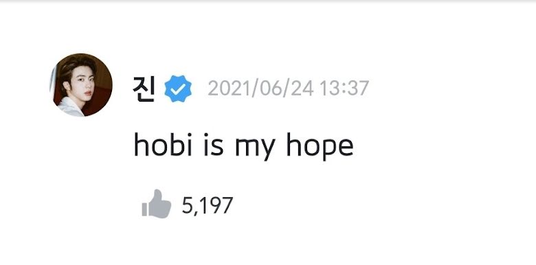 Jin must have read the poignant messages posted by fans and had the sweetest reply to the letter saying, “Hobi is my hope.” Certainly, one cannot live without hope. and Jin needs j-hope in his life.It affirms the inseparable bond between the two.