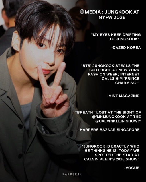 The BTS superstar even inspired the event homepage to feature a dedicated theme: “Jungkook’s debut powers Calvin Klein’s NYFW revival” appearing right under the main trend “New York Fashion Week SS26.”