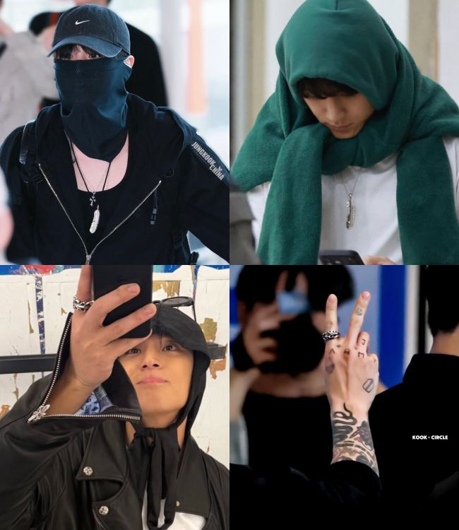 Specifically, on the 23rd, fans noticed that Jungkook and Mingyu were wearing identical accessories when they appeared at the airport on the same day, albeit heading to different destinations—Jungkook departing for Tampa, USA, while Mingyu flew to Kaohsiung. The items that caught attention included a Goro’s XL Silver and Gold Feather with Metal – Right Facing necklace and a ring from Chrome Hearts. Notably, the Goro’s necklace is only available at the brand’s single store in Harajuku/Omotesando, Tokyo.