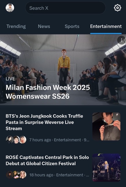 Throughout the day, #JUNGKOOK trended in the “News” and “Entertainment” categories on X, both worldwide and in the U.S. He truly captured the attention of the entire world—even without attending a major event, but simply by hosting a casual cooking livestream!