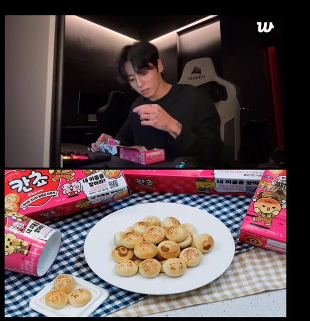 Before diving into the main content of Jungkook’s latest live broadcast on October 29, let’s first clarify what the “name” and the “viral snack” are all about. Going back to his late-night live stream on the 28th, Jungkook introduced fans to one of his current favorite snacks — Kancho chocolate biscuits from Lotte Wellfood.