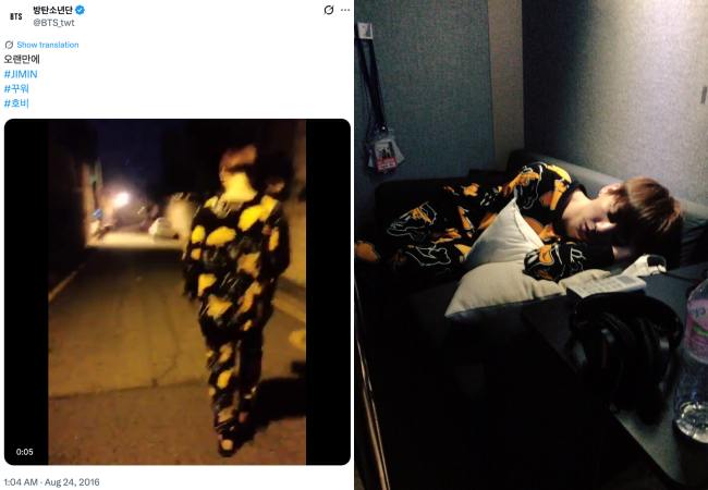 That same year, Jimin not only shared the video but also posted an additional photo on the group’s Twitter account, showing Jungkook dozing off on a sofa while wearing the very same Daffy Duck pajamas. After an overnight walk and hours of intense work, the “Golden Maknae” appeared completely exhausted, drifting off to sleep in an irresistibly adorable state. It is precisely these “low-quality but high-emotion” moments from 2016 that have left fans deeply moved.