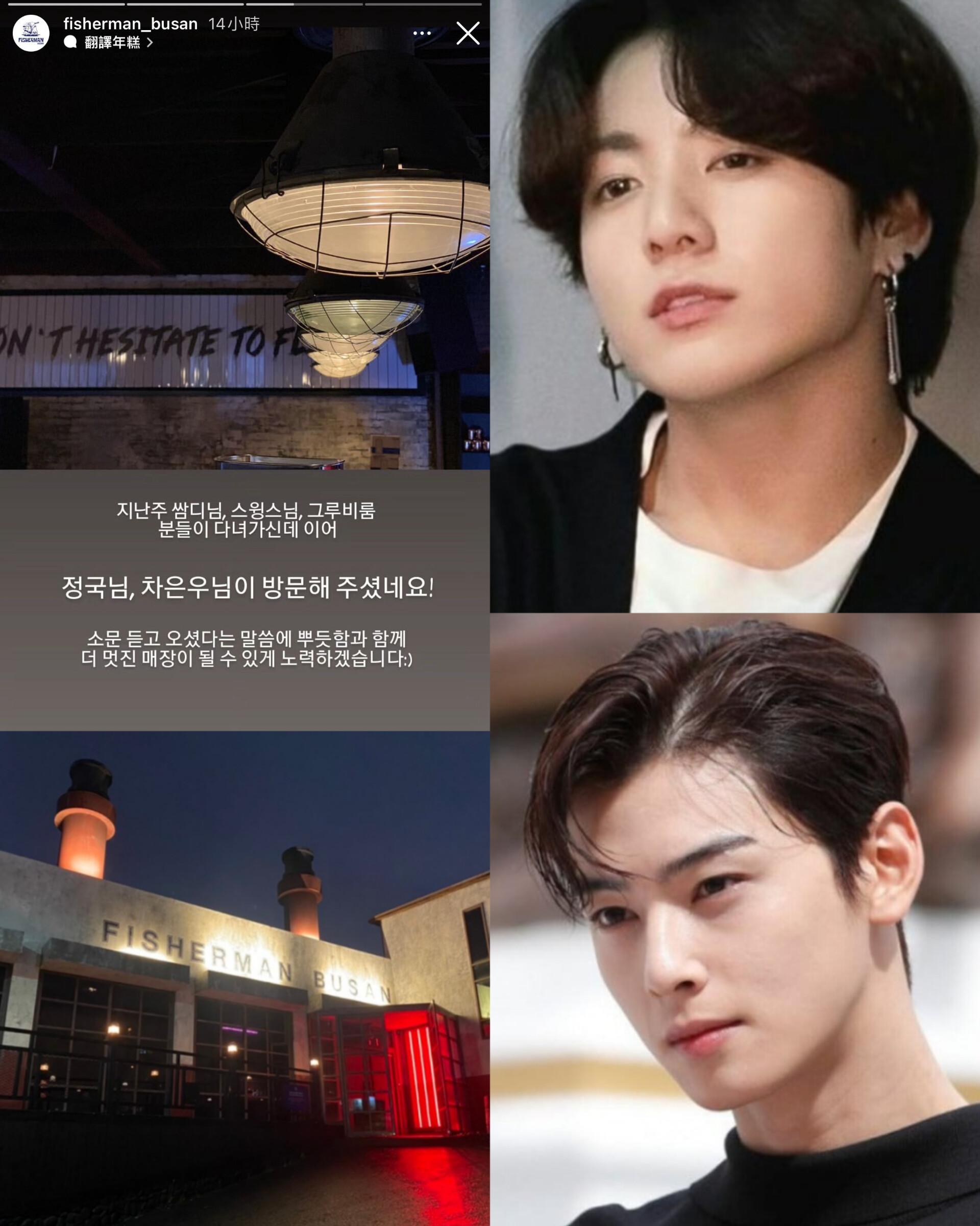 Recently, Jungkook and Eunwoo were spotted visiting a restaurant in Busan and had a great dinner there. Specifically, last weekend, Jungkook was said to have dinner with Eunwoo at a famous store in Busan called Fisherman Busan.
