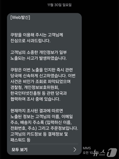 Typically, companies announce such data breaches through pop-ups on their homepage, but Coupang instead sent step-by-step individual guidance via text messages, raising concerns that this approach created confusion. Meanwhile, investigators are focusing on the possibility that a former Chinese national employee, who had left Coupang and departed South кσяєα, was responsible for the leak.