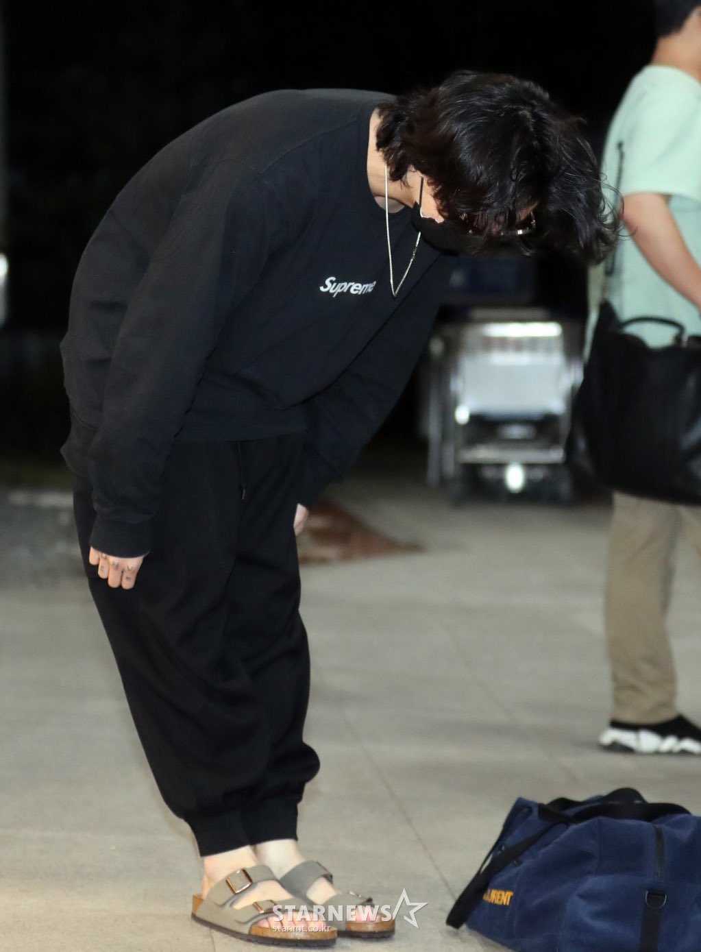 - the first thing he did after his long flight was to bow to everyone, making sure to bow to all fans and reporters. jungkook is so humble and precious, so respectful and that has never changed