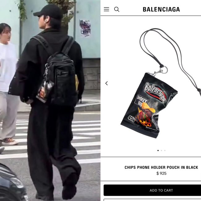In a recent photo taken by a pαѕѕerby, Jungkook was spotted wearing the BALENCIAGA CHIPS PHONE HOLDER POUCH IN BLACK, priced at USD 925. What’s special is that this item is a brand-new release. On Balenciaga’s official UK/GB and ¢αиα∂α websites, the estimated shipping date for this product is listed as late October.
