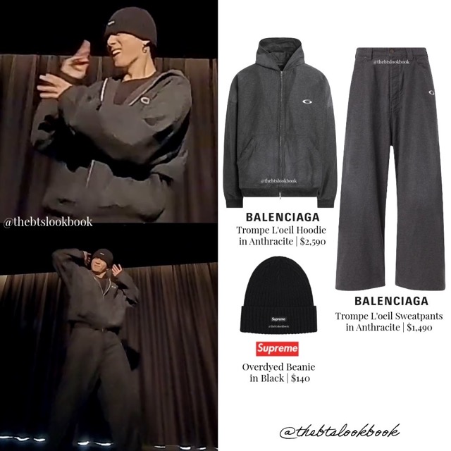 In an early October TikTok dance challenge for Cortis’s “Fashion”, Jungkook was also seen wearing Balenciaga’s Trompe L’oeil Hoo∂ιє and Sweatpants set, another signature look from the French luxury house.