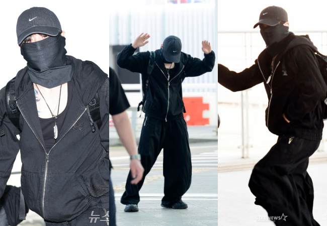 Jungkook and BTS were spotted early this morning at Incheon International Airport, departing for Tampa, USA, to prepare for three concerts kicking off the North αмєяι¢αn leg of their ARIRANG world tour. He appeared in a comfortable all-black outfit, from his inner tank top to his outer jacket and accessories, with a necklace and a black face covering adding an extra edgy touch.