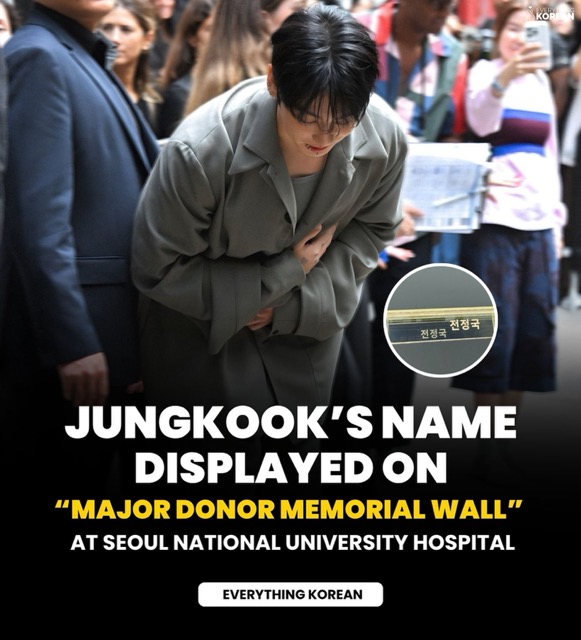 The hospital reported that the donation was used to cover medical expenses for children from low-income families and to support the hospital’s Comprehensive Care Center project. A few days ago, Seoul National University Hospital displayed Jungkook’s name on its “Major Donor Memorial Wall,” in recognition of his significant contribution.