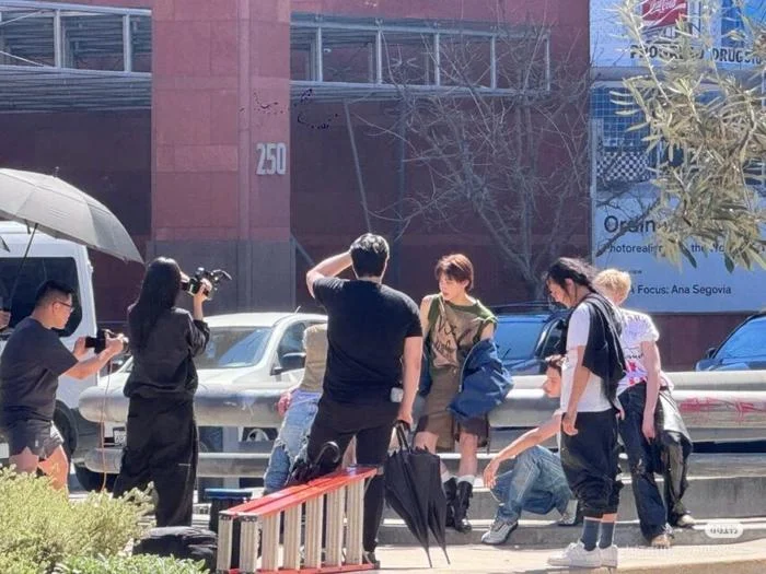 Many sources speculate that the new faces appearing in these photos are members of the upcoming "BTS junior group". Looking at the cameras and the care of the staff in the photos shows that they are participating in the filming process for a project.