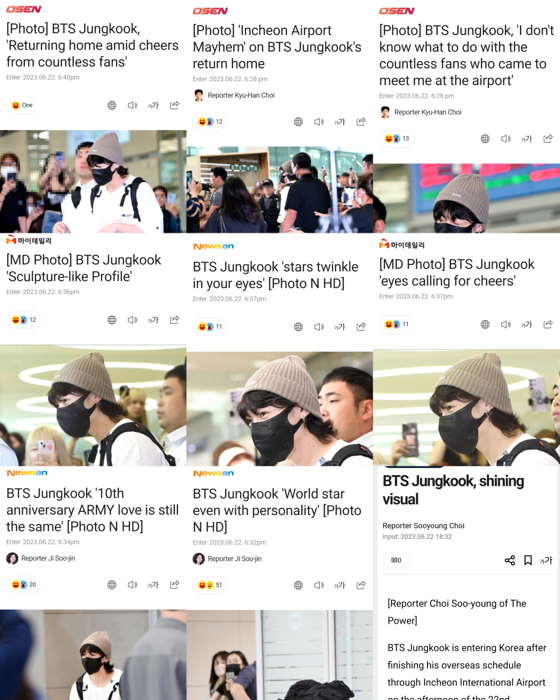 Immediately, Jungkook's appearance made not only the crowd at the airport go crazy, but the online community was also attracted by the large number of fans who greeted him. The scene of the crowd, the cheers, the excitement, the number of articles about Jungkook at the time of his landing, etc. all left K-netizens in a̾w̾e ̾. He's absolutely a global K-pop superstar in this scene.