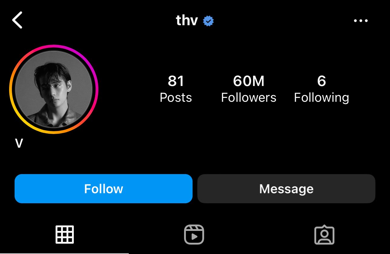 - He has 60M followers, and it hasn’t even been two years… Wow. But it makes sense. V’s posts are entertaining. His face is entertaining. LOL. I’ve also never seen a feed with 10M+ likes on every single post.