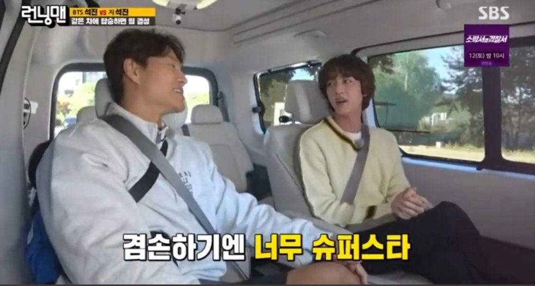 Before the challenge, the members were asked to pick cars to determine teams. When it was Jong Kook’s turn to choose, he happened to pick Jin’s car. Another lucky cast member who also ended up with Jin was comedian Yang Sechan, and the three had a fun conversation together.