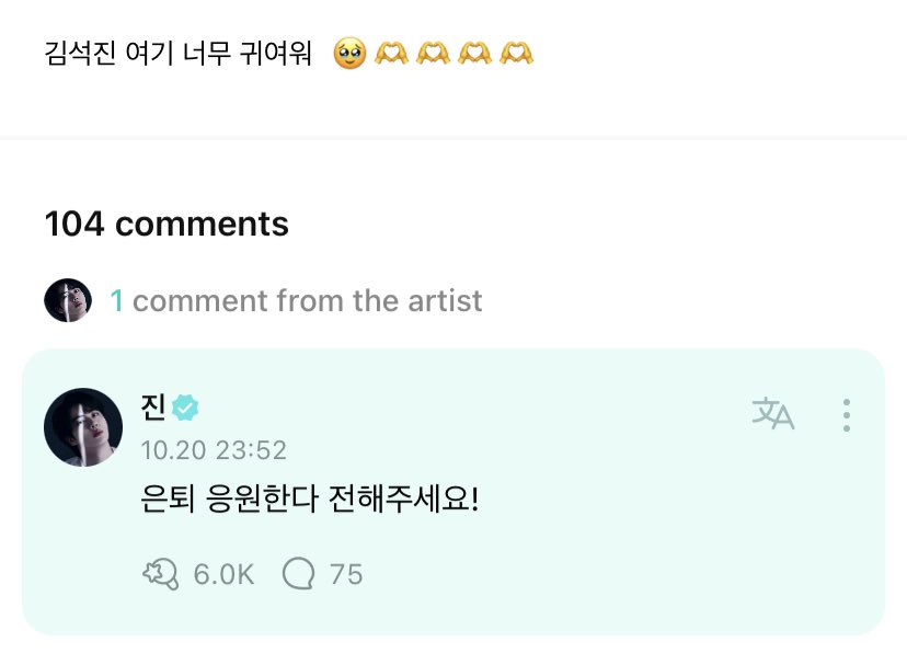 Then, an ARMY uploaded a photo of Lee Young Ji's comment on Weverse. Fortunately, Jin saw the post and he even left a message for Young Ji saying: "Please pass on that I support her retirement!"
