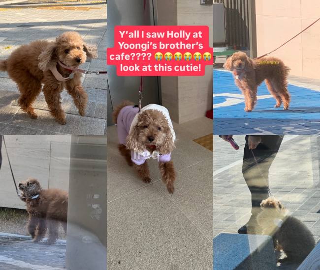 Recently, many videos and photos of Holly have circulated within the fandom community, sometimes featuring SUGA’s older brother accompanying the dog. In fan-shared posts, people have been able to play with Holly and even chat comfortably with SUGA’s brother.