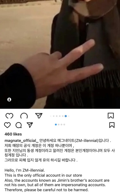 However, the account with hundreds of thousands of followers had already been reported as a fake. In 2022, Jimin’s father made an official statement declaring that their family only has two verified Instagram accounts: @zm_illennial_official and @zmillennial_coffee, warning fans not to be deceived by these malicious impostors.
