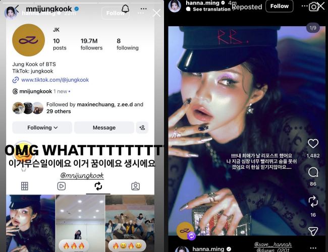 Upon realizing that her ultimate bias had interacted with her account, Hanna was almost overwhelmed with excitement and disbelief. She immediately posted a story with the caption: “OMG WHATTTTTT. What is happening? Is this a dream or real life?” Unable to contain herself, she followed up with another story: “OMG WHATTTTTT!!!! My favorite one reposted me. Now my heart is beating so fast and I can't breathe. I can’t believe this is reality,” showing her peak excitement.