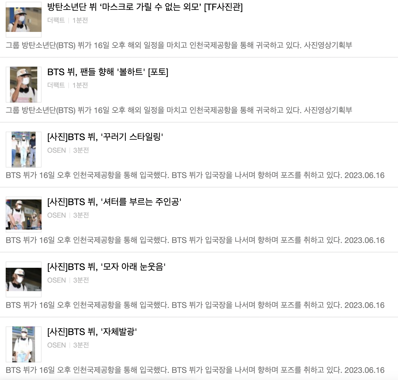 On June 16, V returned to kσrєα after finishing his overseas schedule. Similar to his previous return to the country, V received the welcome of many fans after the long flight back to Seoul.