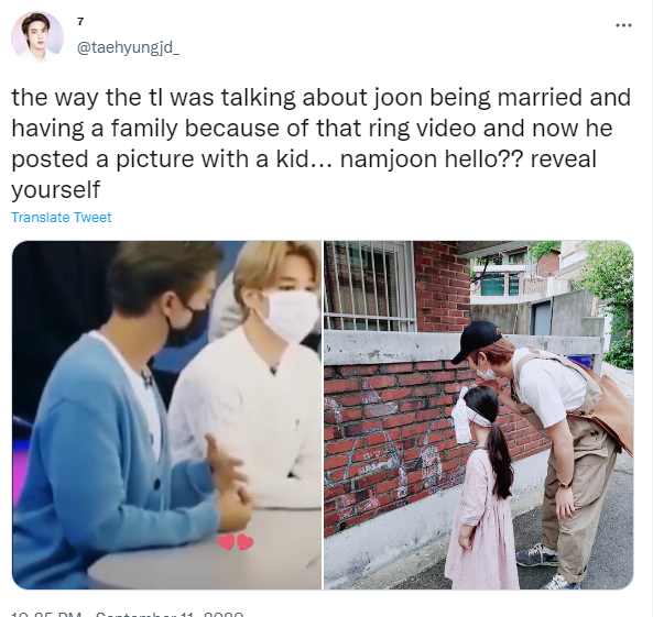 K-media even released cryptic and humorous evidence based on his ring finger and an old photo of him with a child. The story then became a popular joke among ARMYs and fans "take turns confessing" that they are his wife.